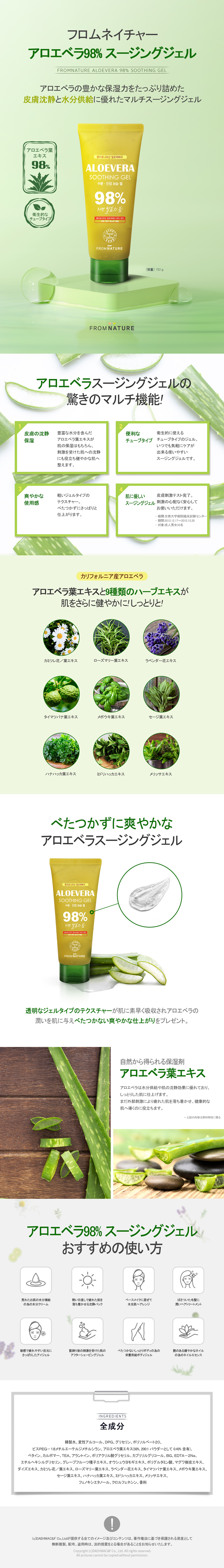 【40%OFF☆アウトレット】【使用期限2026年7月6日まで】アロエベラ98%スージングジェル150g