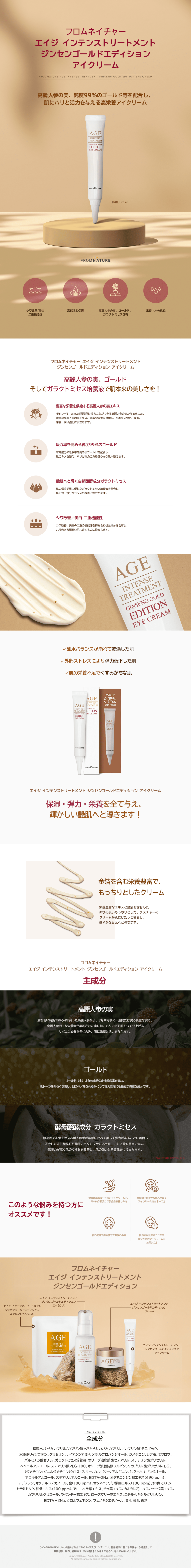 【40%OFF】【公式ストア限定商品】エイジ インテンストリートメント ジンセンゴールドエディション アイクリーム 22g
